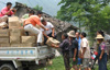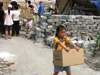 Kuvia avustuspakettien jakelusta.